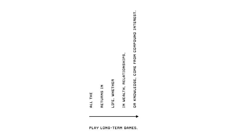 Pero de lo que realmente vengo a hablarte hoy es de la aplicación del concepto de interés compuesto en el resto de ámbitos de tu vida. “Invierte en personas que quieran tener relaciones a largo plazo que te hagan obtener resultados en el largo plazo“ es uno de los capítulos que reza el libro “The Almanack de Naval Ravikant“, un libro que habla sobre creación de riqueza, felicidad y filosofía de vida, modelos de pensamiento y un sinfín más de temas interesantes que te recomiendo encarecidamente. Uno de esos libros para revisar de vez en cuando.